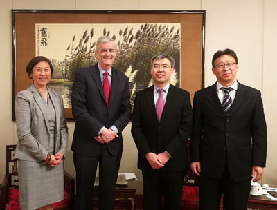 驻芝加哥总领事赵建会见艾默生公司总裁成瑞恩2019年6月12日,驻芝加哥总领事赵建在总领馆会见艾默生(Emerson)公司总裁成瑞恩 (Mike Train) 和高级副总裁杨绍曾(Sara Yang Bosco)。